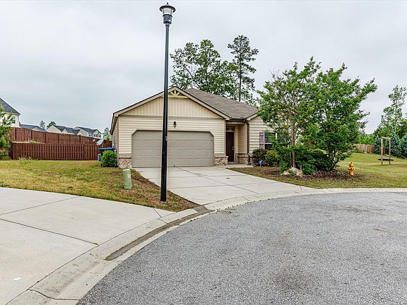 This adorable home has 4 bedrooms and 2 bathrooms. Open floor plan with plenty of windows overlooking a large private backyard and patio. The kitchen includes an island with granite countertops, a tile backsplash, and more! The Primary bedroom has a large walk-in closet and a garden tub in the bathroom. The home has plenty of storage. The entire home was just freshly painted on the inside and pressure washed on the outside. It has a brand-new garage door and opener scheduled to be installed by mid-May. This home has a privacy fence at the end of a Cul-de-sac. Located very close to Fort Gordon's Gate 1 and 2 and close to shopping and restaurants. This home is like new and in excellent condition. It will not last long.