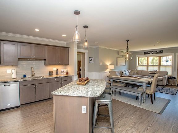 Set at the base of Cranmoreâs South Slope, at Kearsarge Brook Condominiums you & your family can enjoy the healthy, active outdoor lifestyle year-round! This unit is a first floor, 3 bedroom, 2 full bath slope view walk out. Just steps from the South Quad Chairlift! Enter right from the slopes, or from the private gated parking lot into your sun-filled luxury home. Featuring open floor-plan living space, gourmet kitchen with granite counter-tops, solid alder cabinets, subway tile backsplash, stainless steel appliances, and a center island. Perfect for entertaining! Cozy up to your convenient gas fireplace or step out onto your patio and watch the skiers cruising down the slopes. Enjoy low maintenance luxury vinyl core-tec flooring throughout main living area, as well as crisp white wainscoting and crown molding. Gorgeous Pottery Barn light fixtures. Master suite offers a granite double vanity and tile surround shower/jacuzzi tub combo. Beautifully furnished, in-unit laundry, deeded parking, radiant heated walk-ways, attractive private ski locker, and beautifully maintained common areas and landscaping. Ski in/ski out, access to a variety of resort amenities including optional membership to pool and fitness center, and minutes to all North Conway Village has to offer! Seller is including two (2) years of year round ski passes for a family of four (4), along with two (2) years of condo maintenance fees paid at closing.