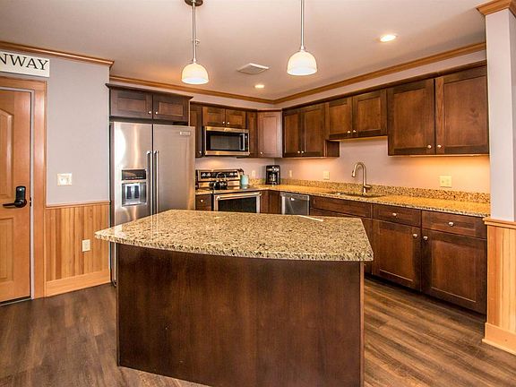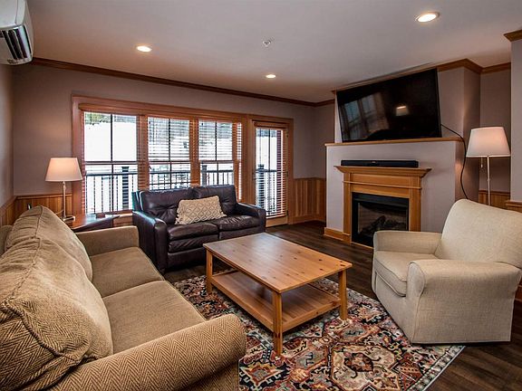 Kearsarge Brook Slopeside Condo at Cranmore! Big views of the slopes with direct ski in/ski out access. Located just steps from the South Quad lift, enjoy the comfort and ease of mountain living in this well-appointed, furnished third floor two bedroom and 2.5 bath lockout unit. Watch the mountain while sitting next to your warm gas fireplace or take in a little fresh air from your sunny mountainside deck. Featuring an open main area ideal for entertaining, air conditioning, natural woodwork, granite counters, low maintenance vinyl plank floors, stainless appliances, in-unit laundry, an ensuite master, gated parking and a private ski locker. The lockout guest bedroom has its own bath along with a separate sink area creating nice flexibility for renting as a one or two-bedroom unit. More interior photos coming soon.