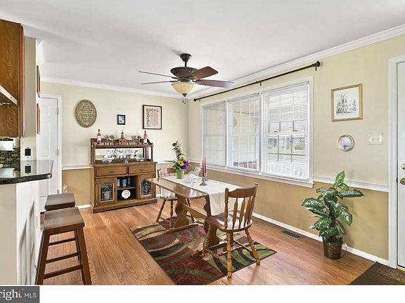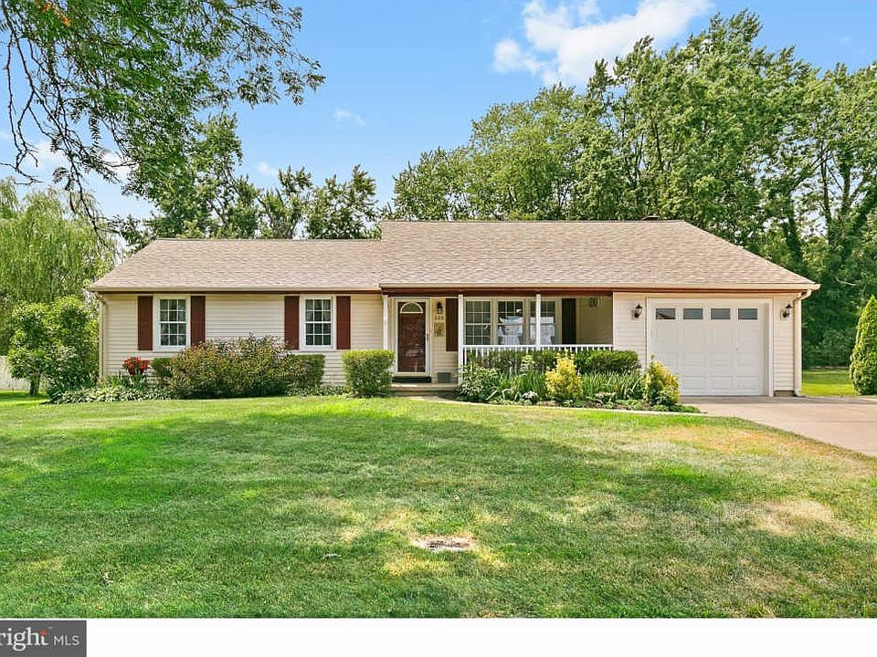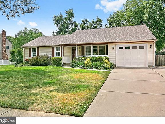 Look No Further!! This 3 Bedroom, 2 Bath updated Ranch with neutral tones throughout is located in desirable "Tenby Chase"! Tons of curb appeal, the front porch adds to the charm and can be enjoyed with your morning coffee or a place to relax after a long day. Upon entry, you step into the Dining Room with laminate flooring, a chair rail and crown molding that is all open to the Kitchen. The Kitchen features updated wood cabinetry with granite countertops and tiled backsplash, an island with seating, a pantry, and sliders leading out to the patio. The Living Room has an open flow into the Kitchen as well and has a skylight, recessed lighting, a brick, gas fireplace with a custom mantle along with a cozy space for an office. The Master Bedroom has laminate flooring with a double closet and a full Bath with updated fixtures. The Master Bath is also opened up into the Laundry Room and the LR also features sliders leading outside to the back yard. There are an additional 2 Bedrooms with an updated full Bath to complete the space. Outside, the backyard offers a covered, concrete patio and has a fenced-in yard along with a detached 1-car Garage, plus a shed for all of your storage needs. Additional Features: Roof approx. 4 yrs. old, HVAC approx. 5 yrs. old, and Washer/Dryer 1 yr. old. Conveniently located near Tenby Chase Swim Club, Rt. 130, Shopping, and in close proximity to Philadelphia. Make your appointment today