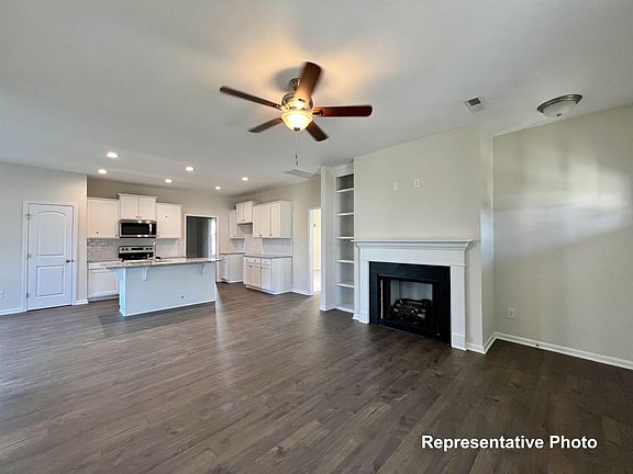 Step inside this beautiful open ranch floor plan with 3 bedrooms and 2 baths! Kitchen features granite countertops, tile backsplash, stainless steel appliances & island with seating. Gorgeous fireplace & built-ins bookshelves in the large living room. Main Suite with ceiling fan, walk in closet & 5ft shower. Entertain on the private patio/deck overlooking the spacious backyard. Photos of similar homes and cut sheets are for representation only and may include options, upgrades or elevations not included in this home.