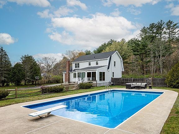 Classic 4 Bedroom Dutch Gambrel Colonial abutting 580 acre Delaney Wildlife Area. 2 acre parcel includes expansive level yard and inground pool for outdoor entertaining. Slate tiled entry leads to the open concept white kitchen with stainless Bosch appliance suite, hardwood floors, and natural stone countertops. Enjoy views of the back yard and pool from the sunny breakfast nook. The first floor features front to back family room, dining room, and living/office space. Sunroom provides easy access to the pool area and grounds with adjacent half bath and first floor laundry. New carpet leads upstairs to 3 bedrooms with a full bath. Master bedroom suite includes a spacious walk in closet and jetted tub. Finished basement offers additional living space with built in storage and direct access to the 2 car garage. Basement utility rooms house the 200 amp electrical service with generator transfer and Buderus furnace. A turn key property and top rated Harvard schools!