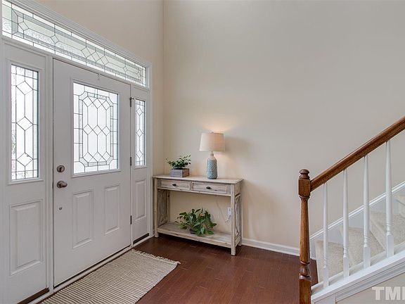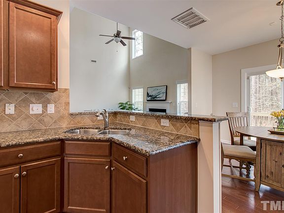 Stroll into popular Everwood! Main level owner's suite with walk-in closet, separate tub, and walk-in shower. Two story family room with fireplace is filled with natural light overlooking wooded buffer. Open concept kitchen with breakfast nook flows to family room. 3 Bedrooms + Bonus room w/closet (could be 4th bedroom) & generous Loft. Custom patio and private, semi-fenced yard. Convenient to UNC, Duke, I-40, RTP. Refrigerator, Washer, Dryer convey.