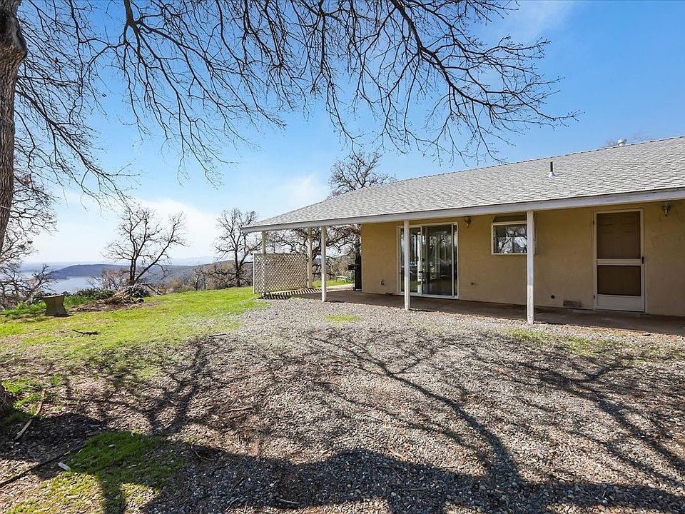 Welcome to your private hilltop oasis, a stunning home perched on 40 sprawling acres of land in Berry Creek, offering breathtaking views of the shimmering Lake Oroville. As you make your way up the winding dirt/gravel driveway, you are greeted with a vast wild landscape, leading to multiple access points to this spacious 1-bed, 2-bath hilltop home. Step inside, and you will be delighted to be greeted with natural light galore with large windows with panoramic views of the countryside. The home has 3 sliding glass doors and 9 ft high ceilings with an open-plan living and dining area that is perfect for entertaining, retreat gatherings, or a peaceful fire stove for those cozy nights in, sliders provide access and an open invite to the surrounding nature scape, and allows for the beautiful country breeze to flow in. Brand new roof installed fall 2022! Step out onto the paved and covered patio with a stunning view of the Buttes in the distance. Spacious master suite with attached bath. If you are a nature lover or just love the off-grid vibes this one is for you!! It's definitely a must-see!!! https://stoneysphotography.hd.pics/235-Sunday-Dr