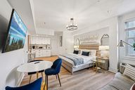 Generous layoutFull-size refrigeratorSoaring ceilingsOpen airy design