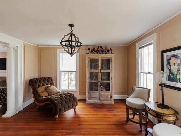 Nestled in one of the most desirable streets in Watertown, this delightful home radiates warmth and charm. Boasting beautiful hardwood floors and large, open living spaces, this property offers a cozy retreat from the everyday hustle. The living room features a welcoming wood-burning fireplace, perfect for chilly evenings. The butler's pantry, new appliances, and coffee bar add convenience and elegance to the home, while many updates ensure modern comfort. Central heating and air conditioning, along with an on-demand hot water, provide year-round comfort and efficiency. Primary suite bathroom is attached. The spacious bedrooms provide ample space, while the maintenance-free attached deck with built-in seating is perfect for outdoor gatherings, barbecuing, and relaxing in your hot tub. The large deck around the swimming pool is ideal for entertaining on hot summer days, and the expansive backyard provides plenty of room for outdoor activities and gardening.