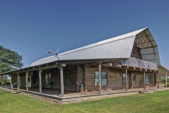 Think Yellowstone in an affordable, somewhat smaller piece of land. Wonderful, authentic Texas ranch house with land overlooking the Brazos River Valley, northwest of Possum Kingdom Lake area. The owner was a home builder in Graham for many years, who shipped in the logs from Montana to personally build his two-story log home. Attached 3- garage doors open into an expansive, 48 x 50 workshop. 25 of the 43.97 acres is cultivated in income producing coastal. 1 of the owners is a TX Licensed Realtor.