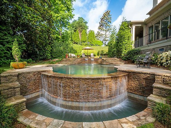 Beautiful, renovated, stately home in gated neighborhood with private walkout backyard, a covered stone patio leading to a spa and infinity-edge pool overlooking a private lake! Enter this light-filled open floor plan home with vaulted ceilings, hardwood floors and large windows overlooking the spectacular backyard. The kitchen is renovated and upgraded with a 6 burner Wolf cooktop, a custom limestone and rubbed brass range hood from Francois and Co, soft white cabinets, Perla Venata quartzite countertops and a custom painted island. Master on the main with windows overlooking the pool and lake. Beautiful renovated master bath with Carrara marble floors and shower walls, free standing tub and heated floors. The large, second master suite is upstairs, as well as 3 additional bedrooms and 2 additional full baths and an office. There is a large formal dining room with elegant wainscoting, a library with beautiful floor-to-ceiling wood bookshelves and a renovated wet bar with lighted glass cabinets and hammered brass sink. The home has attached 3 car garage. Move In Ready with brand new Jen Weld windows and fresh paint through out the home. The walkout backyard of this home is perfect for families and for entertaining. The covered stone patio with gas fireplace leads to the beautifully landscaped and private fenced yard with a spa and infinity edge pool overlooking the private lake. It is a Rare Find to have such a well maintained and beautifully renovated home with a quiet, private resort-like backyard with a lake view in a gated neighborhood in Sandy Springs.