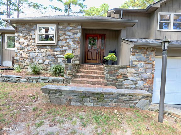 A Whispering Pines Gem that's waiting for you! Enjoy the conveniences of local parks, shopping, restaurants and schools! Craftsman style architecture with focus on stone and wood exterior. Neatly maintained 3BR/2BA home within the ETJ of Whispering Pines, NC. Enjoy nearly 1 acre on a .92 acre lot! Ample parking available including 2 car attached garage & workshop space with easy access to crawlspace. New roof 2024. Newer kitchen appliances 2021 & 2022. New improvements in 2025 include, expansive wood deck and French drain, exterior kitchen door, window glass pane in flex space and handsome Spruce Pine wood wrapped beams, anchoring foyer and vaulted ceiling LR! Natural light surrounds an inviting eat in kitchen featuring a walk-in pantry and easy access to new wood deck, perfect for outdoor dining and entertaining. The vaulted ceiling living room offers an abundance of wood built-in units offering storage and space to showcase your favorite books and collections. Flex space adjoining living area, is currently utilized as a home office. Guests and family members will enjoy 2 guest bedrooms, a full bath and laundry room on main level. 2nd level is exclusively dedicated to the Master BR suite with private master bath, offering a double sink vanity, sep shower, jetted tub and walk in closet. Soothing color pallet blankets the home's interior decor. Enjoy the lovely scenery and natural landscape surrounding home with great spaces for recreation and lots of garden possibliites. Call for your private tour today of this special home just waiting for your personal touches!