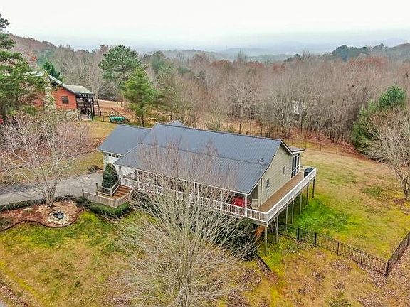 This ranch style has long range mountain views! Sit on your front porch or side deck and enjoy the beauty North Georgia has to offer. Rear screened porch runs the entire length of the home making for a perfect area to entertain. Kitchen has been updated with granite counters and stainless steel appliances and load of cabinets plus a breakfast/dining area. Cozy great room with views of the mountains. Huge master bedroom with an abundance of closet space. Master bath with updated granite countered vanity. 2 additional bedrooms and another full bath with granite countered vanity. Backyard is flat with much of it fenced, great for kids and pets. Additional features include a full unfinished basement, 2 car garage with work area, flat entry from the street and more.