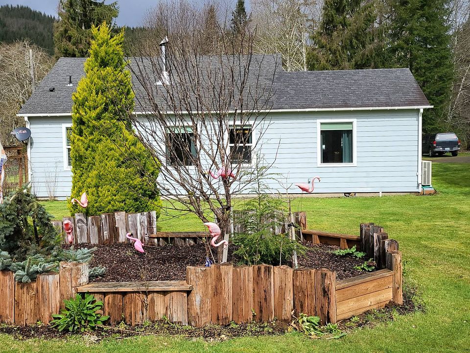 Naselle River front property with house, sunroom, double garage (or workshop & single garage), fenced yard, fruit trees, etc... Property is located above the Naselle River salmon Hatchery. Great fishing!! Raised garden beds, woodshed, fish cleaning shed, garden shed. Wood stove and ductless heat pump.