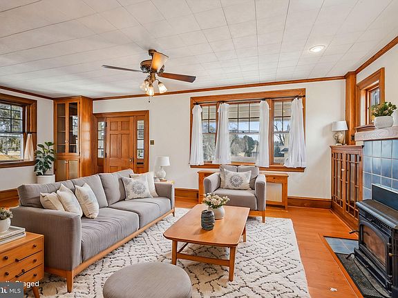 Welcome Home to 235 W 7th Avenue in Collegeville in desirable Perkiomen Valley School District. This 5 bedroom, 3 full bath craftsman home includes all the charm and character you desire with the space you need! A delightful front porch invites you to sit back and unwind. Step inside, and you're greeted by a bright, spacious living room featuring exquisite built-ins and a cozy wood-burning fireplace. Expansive windows flood the space with natural light, seamlessly blending the indoors with the beauty of the outdoors. The large living room flows effortlessly into the dining room surrounded by large windows. The open concept kitchen creates the perfect gathering space. A large granite peninsula offers additional seating and features a built-in wine glass holder and cookbook storage. A full bathroom is also conveniently located on the main floor as is direct access to the entryway from the covered rear porch. Step outside and enjoy a large paver patio and a screened in gazebo, offering the perfect spot for relaxation and entertaining. A detached, oversized two-car garage with a second-floor storage/work area is ideal for gardeners, hobbyists, or anyone needing extra space. Two additional sheds and a firepit area can also be found in this amazing yard. Upstairs, the second floor offers 4 spacious bedrooms with hardwood floors beneath. Each has its own charm and all have ceiling fans and 2 windows. A full bath, with large vanity, can also be found on this level. The third floor is a private sanctuary, boasting a large, luxurious primary suite with a full bath, soaking tub with skylight, and two generous closets. All of this sits on a picturesque 1-1/4 acre lot, framed by mature trees for privacy and serenity. Don’t miss out on this extraordinary home—it’s truly a rare find!