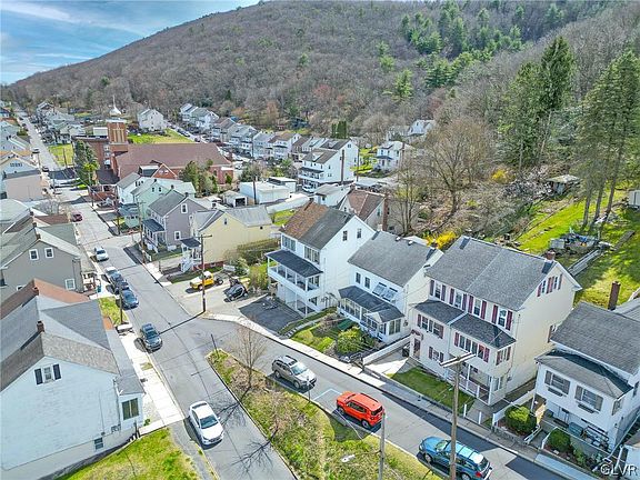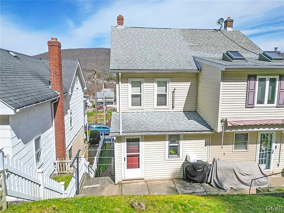 MULTIPLE OFFERS RECEIVED. Highest and Best by Friday 4/12 @ 5 PM. Immaculately maintained Nesquehoning twin! From the covered front porch, with attractive and durable vinyl railings, you are welcomed to the ground level of the home via a cozy dining room which leads onto the kitchen creating a warm welcome. This level also boasts a combination laundry and storage room to the rear with half-bath. The second floor presents double living-rooms, divided by a large arch, the arch echoed in portals throughout this level. To the front, an enclosed porch offers lovely north-facing views and offers original detail in a stunning door and stained glass over the central window! This level also features a full bath and rear foyer area to the back concrete patio with easy access to the front of the home via a generous concrete stair and walk. The third level boasts two lovely bedrooms, again lovely views from the front, and access to the fourth level with a third bedroom and attic storage access. The home’s yard is sits on a hillside and is bordered to the rear by forest. This home has been cared for by its family for over a century and is ready to welcome a new family into its history.