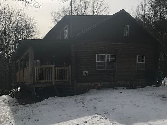 Enjoy country living in this renovated log cabin featuring 3 bedrooms, 2 new full bathrooms, wood floors, spacious living room with French doors leading to one of the 2 covered porches. Overlooking scenic private yard and 3 level barn. On just over 5 acres. Call today!