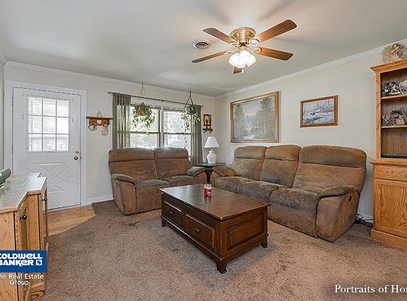 Many upgrades & improvements have been made to this well maintained 3 bedroom ranch style home~Custom cabinetry & built-ins in kitchen, eating area & full bathroom~Hardwood flooring under carpeting~Spacious eat-in kitchen promotes lovely custom oak cabinets w/crown molding, ceramic tile flooring, breakfast bar/planning desk & newer patio door w/built-in adjustable mini blinds~All appliances included~The eating area features wainscoting, chair rail, crown molding & a custom built-in coat nook w/cabinets & bench~Laundry closet (washer/dryer included)~Newer 6-panel doors & trim~Full bathroom features custom oak cabinets, vanity & mirror, ceramic tile flooring & shower surround~Master bedroom offers a half bath w/pedestal sink & closet area w/room to install a shower if desired~Newer roof w/tear off~Enjoy large backyard w/deck, shed & gravel pad for camper or extra vehicle parking ~2-car attached garage w/service door & pull down to attic~Nice home on large lot!