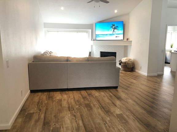 This bright and beautiful 4 bedroom, 2 bath home that is nestled back on a quiet cul de sac in highly desired Heritage Village was just completely updated from floor to ceiling last month! Brand new flooring, textured ceiling and walls, paint, countertops, cabinetry, all appliances, light fixtures, ceiling fans, can lighting, handles, hardware, premium faux wood blinds... you name it, it’s brand spankin’ new! Walk in the front door to a clean, open and roomy living room with vaulted ceilings, new ceiling fan, new bright and dimmable can lighting and a beautiful white brick fireplace. The oversized living room bay windows bring in lots of natural light while providing extra seating too. Just off the living room is the dining room, perfect for family meals by another large window full of natural light! Walk through the dining room straight into the beautiful kitchen, bright and white and cozy as can be. You are going to LOVE being in the kitchen! From the farmhouse sink, loads of floor to ceiling cabinet space, soft close cabinets and drawers, lazy Susan cabinet, soft close spice rack cabinet, bright canned lighting, built in water filtration system, French doors with inner blinds for privacy, big kitchen windows, brand new top of the line stainless steel Kitchen Aid appliances and more...you’re never going to want to leave the kitchen. Right off of the dining room is the laundry room which also leads to the garage. There is a TON of cabinetry in the laundry room, 12 floor to ceiling cabinets plus oversized cabinets above the washer and dryer area. Walk into the fully finished garage, new drywall, texture, paint, can lighting and a perfect area for your very own home gym. There are 4 bedrooms all with new ceiling fans, new carpet, new texture and paint, a large walk in closet in master bedroom, new premium faux wood blinds in all windows, dimmable canned lighting in master bedroom. Both bathrooms contain brand new tile flooring, lighting, paint, soft close cabinets and drawers, mirrors, towel racks, countertops, sinks, toilets, bathtub, shower, shower doors, faucets, hardware, door knobs, and solid surface shower walls. It’s all brand new! This beautiful home is a short walk to the open park area with pool, clubhouse, walking trails, basketball courts, fitness center, tennis courts and more. A short walk outside Heritage will lead you to grocery stores, InShape, Starbucks, restaurants, ice cream and more! Enjoy the beautiful desert nights in this cozy home with two covered patios and high fences. Don’t let this beautiful home pass you by! Call or text to come see it for yourself! 7606089519
