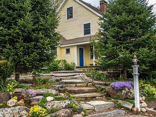 Hillside farm in West Rockport with spacious 1995 farmhouse offering wide mountain views across the valley, rolling fields with new fencing, substantial barn, stable, perennial gardens, mountaintop blueberry barrens, and extensive stonework. Septic is 3BR