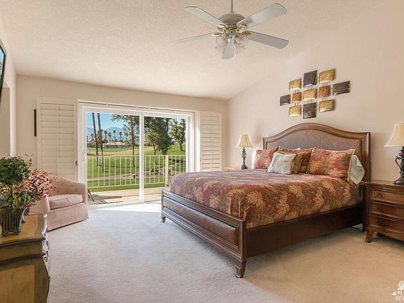 JUST REDUCED! Picture perfect views! Located on the highly desirable Vista Royale Circle loop! Western, southern, and northern mountain views, multiple fairways, and lake views abound from this upstairs Desert Falls' condo! The Wow Factor abounds the minute you step up to the front balcony. Enjoy your morning coffee with the sunrise on the front balcony OR the rear balcony which presents the morning sun on the awe-inspiring San Jacinto mountain. Once inside, this condo has a remodeled kitchen with newer counters, cabinets and appliances. The windows and sliding glass doors have been replaced. This floor plan includes a junior master suite, as well as a large main master. Tennis on 8 lighted tennis courts, pickle ball, & an extensive fitness facility is included in rental. Heated pool is just across the street. Easy access to I-10; shopping and dining are within walking distance of this piece of paradise. Unfurnished rental. Two car garage included.