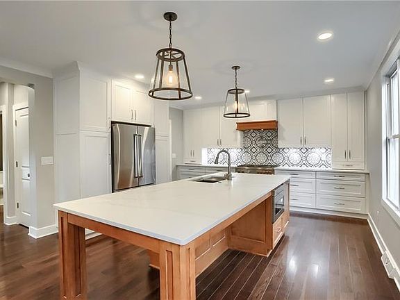 Better than new! This incredible renovation boasts 5 bedrooms, 3.5 baths with a 2 car detached garage. Beautiful open custom cooks kitchen with stainless steel appliances which includes a 5 burner gas stove with pot filler, incredible back splash with gorgeous quartz counters on the oversized island which is open to the family room. The large laundry room has tons of storage and accesses the rear covered porch and yard. Solid 3 quarter hickory hard wood on the main level to the 2nd floor. The owners suite on the 2nd floor has a custom walk in closet, a double bowl vanity and a large tiled shower with glass door. An additional full bath with 2 more bedrooms encompass the 2nd floor. The 3rd floor has 2 additional bedrooms with a full bath. CAT 6 in Brs,New HVAC,H2O tank,water softner, plumbing and electrical. Basement has been waterproofed with new cement flooring. No need to move your car as you will be a short walk to Main Street to enjoy dining, shopping and parks etc.