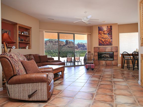 This home is nestled in the beautiful Sedona Golf Resort and boasts some of the most magnificent views in the area. Contemporary open concept includes wonderful Great Room with attractive fireplace, built-in bookshelves, high ceilings, and amazing Red Rock Views. Nice open Dining and Kitchen area with great Breakfast Bar. Comfortable Den for Office, TV, or visiting friends and relatives. Large Master Bedroom with a wall of windows to keep enjoying those Red Rock views. Master Bath includes a walk-in closet, dual sinks, spa tub, and separate shower. Split floor plan with second bedroom on opposite side of home near the full guest bath. Nice two car garage with great storage area. Large covered patio in private backyard with attractive perimeter wall and of course those amazing views.