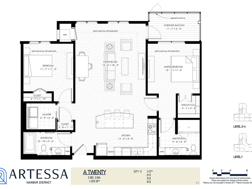 This 1,252 SF residence at Artessa Mound Harbor features 2 bedrooms/2 bathrooms with a spacious laundry room, master walk-in closet and a large screened-in, maintenance-free deck. Make this home your own through one of our four finish collections featuring granite/quartz countertops, luxury vinyl plank flooring, stained or painted maple soft-close cabinetry, and more!