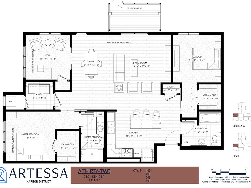 This 1,460 SF residence at Artessa Mound Harbor features 2 bedrooms/den/2 bathrooms with a spacious master bedroom, large walk-in closets and a screened-in, maintenance-free deck. Make this home your own through one of our four finish collections featuring granite/quartz countertops, luxury vinyl plank flooring, stained or painted maple soft-close cabinetry, and more!