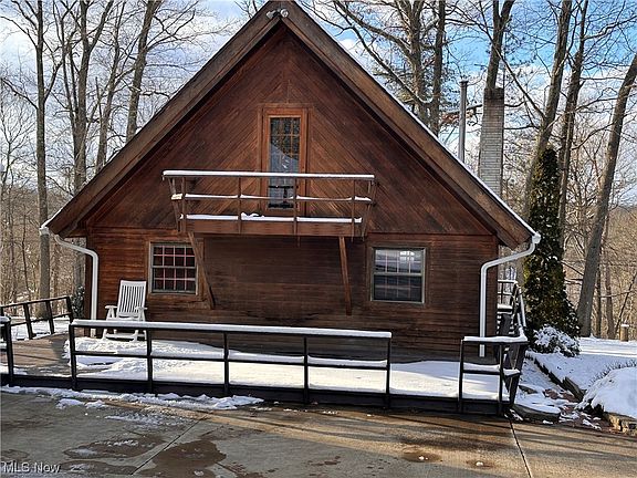 This is a great opportunity to have a home at Lake Buckhorn that really has the warm, cozy lakehouse feel that most Buckhorn buyers are looking for at the Lake. This is an Estate and is sold “AS-IS”. The limited items remaining in the house are included and will transfer to the buyers on title transfer. This home is across the street from the lake and near the very popular Area 8 Rec Area. This cedar-sided home with log beam interior has no drywall. It is a warm, cozy feel buyer that loves the wood look. Nice kitchen with hickory cabinets w pull-out shelves, stainless steel appliances, soaring beamed ceiling, wood floors and entirely open to the Great Room with its wood burning stove. There are 2 bedrooms and a nice full bath on the main floor. Upstairs is a Large Open Loft with log beams that overlooks the Great Room and a 10x4 exterior balcony. There is a 30x8 elevated deck on the front of the house toward the lake. There is a 24x12 deck on the back of the house with a 10x4 balcony above. There also is a 42x6 wrap-around deck. The basement is full with laundry & workshop area. It has a walk-out, but doesn’t really seem as if it would be a good finished area. The huge garage & yard are highlights of property. The 3 car garage w barn-siding walls and a 2nd story with a pulldown staircase. Not pulldown steps; actual stairs. The is a half bath and a motorized pulley system to the 2nd floor. There is a heater. The garage was set up as a great workshop with vacuum system. Will be a Fabulous man cave. The home is on 3 lots totaling 1.19 Acres. The property is really nice w wall accent walls. Lake Buckhorn is a 1,120 Acre gated community in the heart of Amish country. The lake is about 2 miles long w Rec Areas along the lake as well as throughout the community off lake. Whether you enjoy fishing (well stocked ), skiing, wakeboarding, tubing, swimming, wake surfing, picnicking, kayaking, paddle boarding … there is something for everyone. PICKLEBALL & TENNIS