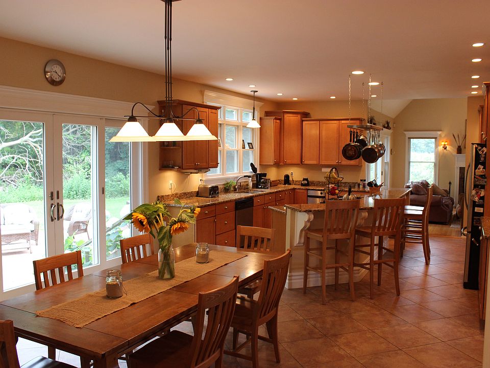 Private yard overlooking a farm field, great areas inside and out for entertaining, high end custom finishes throughout the home.