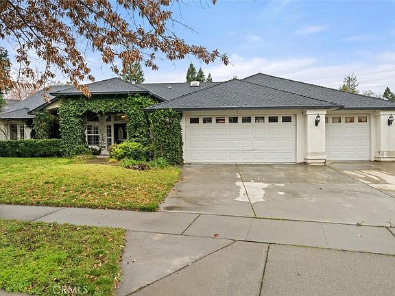 Nestled in the serene Nob Hill subdivision of Chico, this 4-bedroom, 2.5-bathroom home is designed around fun and comfort. Boasting 2,268 square feet of living space, this home has so many features for entertainment and functionality. Walking in, you'll be greeted by the warmth of hardwood floors and the inviting ambiance of the imperfect smooth walls. High ceilings add an airy feel to the open floor plan, creating a sense of spaciousness throughout. The heart of the home is the beautiful living room and kitchen, where concrete countertops, stainless steel appliances, and a generous breakfast bar await any culinary enthusiast. The layout of the home is thoughtfully designed as a split floor plan, there are three bedrooms and a bathroom conveniently situated on one side. This bathroom also gives access to the backyard, wonderfully updated for perfect poolside convenience. On the opposite end of the home is the expansive and private master suite. The master suite continues the hardwood floors, plantation shutters, and a luxurious en-suite bathroom complete with a soaking tub and walk-in shower. The heat and air was recently replaced and has a zoned system to create additional comfort and energy savings coupled with the leased solar system. Outside, you'll discover a backyard oasis perfect for entertaining and unwinding. Mature landscaping surrounds the sparkling pool, creating a private retreat for those warm summer days. A covered patio offers a shaded area, while the rest of the yard provides space for outdoor activities. Additional features include a 3 car garage with one bay converted to a bonus office/den space, perfect for remote work or creative endeavors. The attic provides ample out of sight storage space, accessible via an easy-access ladder. Conveniently located near Bidwell Park and neighborhood amenities, this home offers the best of Chico living. Don't miss the opportunity to make this yours!