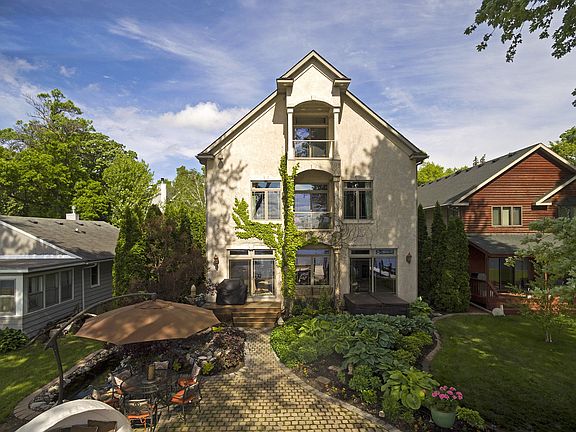 Simply stunning lakeshore living with everything at your fingertips! Meticulously maintained, this home is the easiest way to enjoy the lake lifestyle: quiet waters, leave-in dock and lifts, entertaining spaces inside and out. Well thought out SMART HOUSE ? CONTROL4 Lighting Security, AV system operated by phone. Custom garage that doubles as a locker room for backyard rink! Most windows and exterior replaced since 2013 Mound storm. Furnishings are available under separate sale.