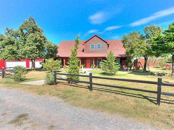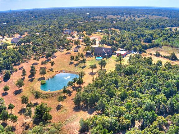 *RURAL ACREAGE OASIS on 7.5 ACRES!* Through remote gate access, you will find a gorgeous, Log Sided, Custom Built, 3100sf home with 5 Bedrooms, 2.5 Baths, Dedicated Office, Game Room on 7.5 ACRES! The great room boasts vaulted, beamed ceiling with floor to ceiling stone fireplace and picture windows overlooking back acreage with POOL and POND! The living room is open to dining and kitchen to create a fabulous open floor plan! The spacious kitchen includes a breakfast bar, island, farmhouse sink, granite countertops and TONS of cabinetry & counter space! Upstairs you will find a 2nd living/game/hobby area along with a large bedroom. The home has storage galore! The 7.5 acres (mostly bermuda) is totally fenced with fruit trees, partially wooded and includes a 40X25 Shop with 220 Electric, a 30X50 Machine Shed, a Storm Cellar, Chain Link Fenced Backyard with a 26ft Pool a STOCKED POND and an outdoor living area which is sure to please! The 36X31 Detached Garage has Sink, Hot Water, Storage and 21X36 Game Room upstairs which is totally insulated with HVAC! This property literally accommodates all your needs in one place! Located just 10 minutes from I-35 for easy access to the metro and 10 Minutes from the Lazy E arena! Bring your horses, livestock, pets and family to this RARE FIND! (2.5 adjoining acres available for sale & can be negotiated with an acceptable offer).