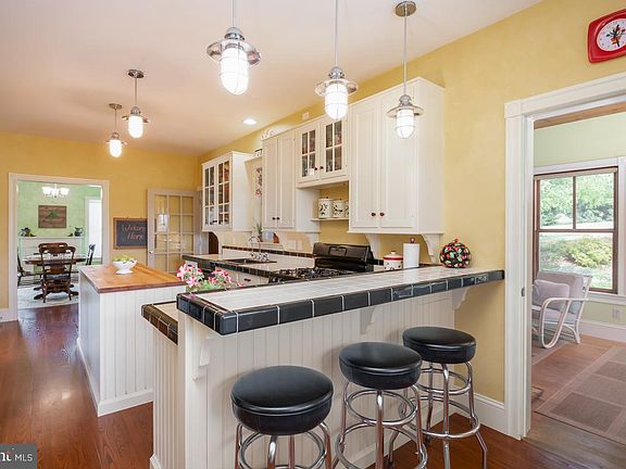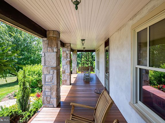 Sitting on a sprawling 1.5 acre lot just minutes from French Creek State Park and the PA Turnpike, this 3,300 square foot custom built home embodies tranquility and durability. This stucco farmhouse with 4 large bedrooms, 2.5 baths has a timeless appeal. The exterior has low maintenance cement siding, recently repainted trim, and an 8’ deep mahogany front porch stretches across the entire front providing plenty of room for your rocking chairs and porch swing. A copper roof over the kitchen's breakfast bay window adds a distinctive touch. Custom-made storm/screen doors and a durable Elk 50-year asphalt shingle roof, resistant to 90-mile-an-hour winds, ensure enduring quality. Built with Superior Concrete Basement walls, it offers unmatched storage space and enduring quality. Beyond its sturdy construction, this residence is a masterpiece of thoughtful design and premium materials. Inside, the first and second floors feature random-width ash hardwood flooring, custom trim & 8" baseboards, and practical ceramic tile in the mudroom and bathrooms. Nine-foot ceilings on the first floor create a bright, airy ambiance, ideal for comfort and refinement. The Master bedroom has an L-shaped master closet & a beautiful bathroom with wainscotting, a clawfoot tub & wonderful solid vintage wood doors. Discover a sunroom flooded with natural light and finished with ash hardwood floors. Throughout the home, elegance abounds with double and single French doors, Emtek oil-rubbed bronze exterior doorknobs, solid core interior doors with lovely glass knobs, and a charming 1940s-style kitchen. The kitchen boasts black and white tile, cream cabinets with red glass knobs, black appliances, under-counter lighting, and a practical butcher block countertop. A floor-to-ceiling pantry cabinet and pull-out drawer cabinetry offer ample storage. The breakfast room opens into a beautiful floor-to-ceiling bay window, perfect for enjoying morning meals. The third floor offers 500 square feet ideal for a spacious office and guest quarters with 10 inch shellac pine board siding, while the basement with 8.5 foot ceilings presents an opportunity for further customization. Enjoy the convenience of a Martins Water System and the functionality of the laundry room with vibrant Armstrong tile flooring. Surrounded by meticulously landscaped gardens and mature trees throughout the property, along with the many flowering shrubs, perennials & annuals, there is always color blooming. There is plenty of space for a vegetable garden in the wide open upper level of the backyard. Don't forget the oversized detached garage with two automatic doors and openers. Plenty of room on the second floor for storage or a workshop. Along the side runs a 10 foot wide concrete pad which is perfect for your RV. This home offers more than just living space; it presents a lifestyle marked by comfort, tranquility, and impeccable craftsmanship. Schedule your private showing today and experience firsthand the allure of this extraordinary property.
