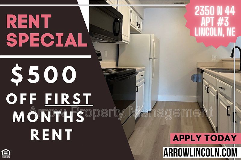 Welcome to 2350 N 44 apartment #3, a modern 2-bedroom, 2-bathroom apartment located in the heart of Lincoln, NE. This pet-friendly unit features luxury flooring, central A/C, and modern updates throughout. Enjoy the convenience of a dishwasher, microwave, and in-unit washer and dryer. The spacious walk-in closet provides ample storage space, while the private patio is perfect for relaxing outdoors. With off-street parking available, you'll have peace of mind knowing your vehicle is secure. Don't miss out on this opportunity to call 2350 N 44 your new home! Visit Arrowlincoln.com today to schedule a tour! Additional information- Pets negotiable with a $150 non-refundable pet deposit and monthly fee per pet. This unit does not accept a Section 8 Voucher. Tenant pays gas and electric; landlord pays water and trash. Amenities: dishwasher, microwave, central a/c, in unit washer and dryer, walk in closet, private patio, pet friendly, off-street parking, luxury flooring, modern updates