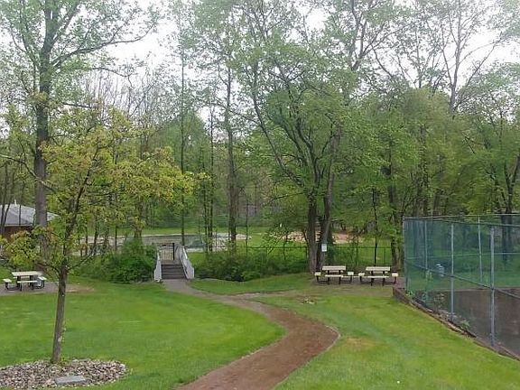 BEST LOCATION in Complex -"E" Building backs up to deep, private woods. SECOND LEVEL w/ extra huge built-in closet in LR & walk-in BR closet. Sliders to large balcony w/ tile floor & storage. Central A/C. Assoc. Fee includes Water, Sewer & Trash. Low taxes and very convenient location, close to everything! Laundry Room in same building. Assigned parking wit lots of extra visitor parking. Mailing address & bordering Morris Plains. In-Ground Pool & Tennis Courts. NO DOGS ALLOWED