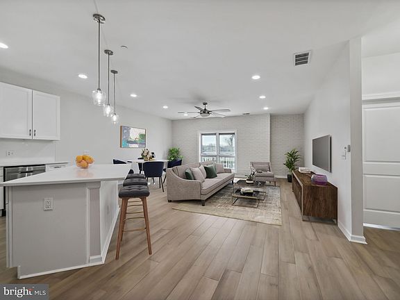 This one bedroom, one bath condo in the Lofts at Town Center, has been completely redone - freshly painted, with a new kitchen, bathroom, ceiling fans and all new maple flooring throughout the unit. The kitchen boasts all new white cabinetry with matching white quartz countertops and subway tile backsplash, offsetting new stainless steel appliances. An oversized, matching island completes the kitchen, offering even more cabinet and work space, with room for counter-height seating and topped with LED glass pendants. Brand new, maple flooring with a modern gray finish, flows throughout the kitchen into the light-filled great room, large enough for any living/dining combination you desire, topped with recessed lighting and new ceiling fan and framed by a white-washed, brick wall. The flooring continues into the spacious bedroom with two full length windows and another new ceiling fan, for your comfort. The bathroom renovation continues the kitchen's crisp, updated design, with a new coordinated white vanity, sink and tub shower. A convenient storage unit houses the washer/dryer, as well as the HVAC unit and water heater. You'll also have access to your own locked storage unit in the building for seasonal storage, bikes, etc. Your HOA membership includes access to a well equipped fitness center just steps from the condo, as well as use of a large conference/party room available to residents. Conveniently located in the Lofts at Washington Town Center, in the midst of shopping, dining, medical offices and more, with easy access to NY/Philly, the Jersey shore. This one's got the whole package! (Don't miss the 3D tour!)