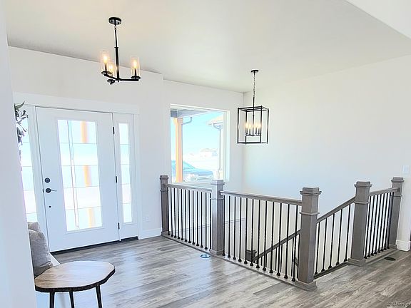 Brand new w/ fresh beautiful finishes! One of the top trends in cabinets for 2022 --blue-these blue cabinets have a hint of gray, coupled with white/gray accents, make a beautiful kitchen! Lots of storage, huge pantry w/ pocket door. Great master suite, ample space in the other 2 bedrooms, inviting fireplace, beautiful windows, nice back porch overlooks a hay meadow. AC, finished basement family room, rec space & flex space-huge extra deep garage! Call LA 307-256-7283 to view! a few touch ups to perfect