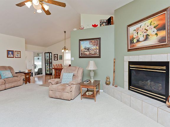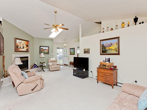 Great lock & leave home on a quiet street. The backyard is easy maintenance overlooking park. This home was completely painted throughout with all new appliances. Very light and bright interior. Enjoy the sunroom and gas fireplace for winter days. Low utility bills, vaulted ceilings in the living room with fans throughout. HOA mows the front lawn and snow removal on sidewalk in the winter.
