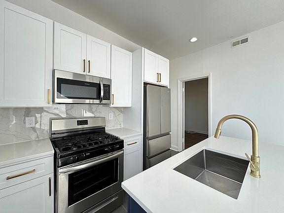 We now offer virtual video tours of all of our apartments! Schedule a virtual tour and rent this apartment from the comfort and safety of your home! Apply online! Stunning two bedroom, one bath gut rehab in Bucktown features central air, island kitchen with eating area and quartz countertops, shaker kitchen cabinetry with top of the line stainless steel appliances, dishwasher, fridge, gas oven/range, built-in microwave, tall 10' ceilings, large, open living and dining area, queen size bedrooms, great closet and storage space, enclosed back porch, tons of natural sunlight, new bathroom with custom tile, easy street parking, short walk to the Western Blue Line and all that Bucktown has to offer, pets welcome too! A must see! Won't Last Long!