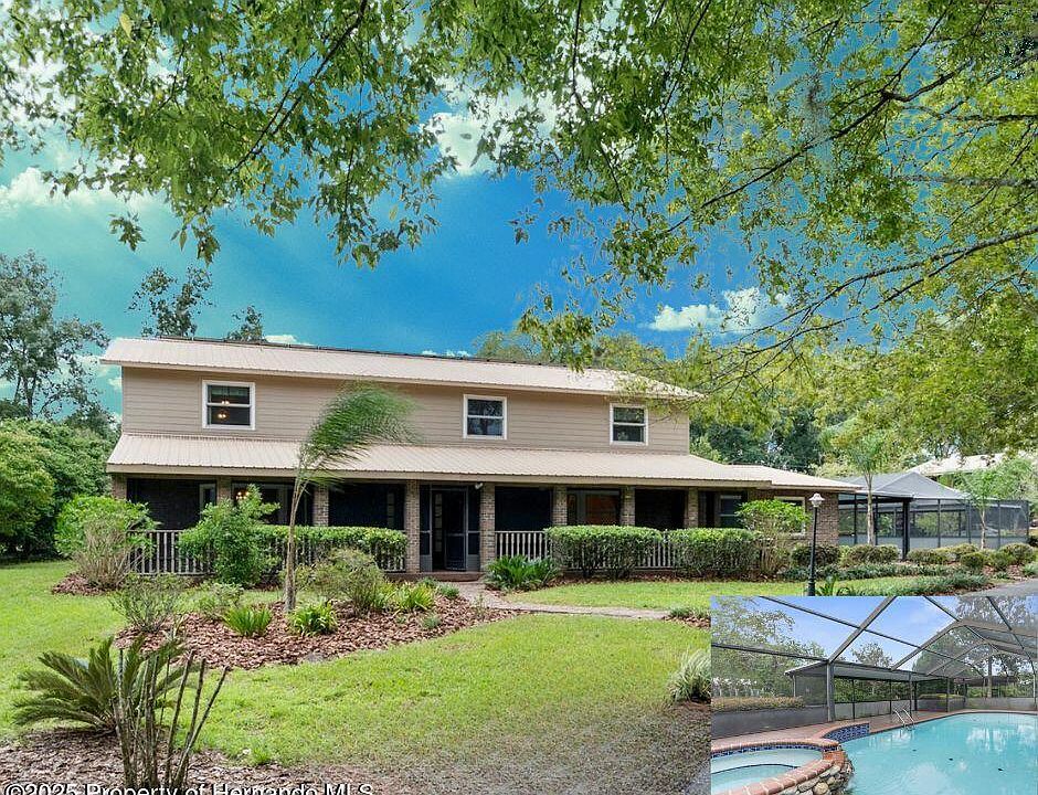 * WORKING CATTLE RANCH * Welcome to your HIGH and DRY 7.8 acres dream farmhouse estate! Which, by the way, did not suffer any hurricane damage or flooding! This magnificent two-story farmhome, offers five spacious bedrooms and four bathrooms, (PLUS A 1/1 GUESTHOUSE w/ laundry) and an apartment barn, perfectly designed for modern living. All homes features a durable and stylish metal roof, ensuring longevity and minimal maintenance. Also featuring a fully paid for solar energy system. Your energy bill will be lower than you could ever imagine. Experience uninterrupted comfort with a whole-house gas generation system, which powers the entire property seamlessly, providing peace of mind during any weather or storm. It should be noted the home has new windows, which are energy efficient. Step outside to your personal oasis: the gardens are lush and including an inground self cleaning swimming pool complete with a relaxing spa, ideal for both entertaining and unwinding. As mentioned, the property also includes a charming detached one bedroom one bath with screened in Florida room guest house, perfect for visitors or potential rental income. Multiple outbuildings provide ample storage space or opportunities for various hobbies and projects. Including a nearly finished one bedroom, one bath barn apartment. Situated on approximately 8 agricultural acres, this estate offers both extreme privacy and convenience, located behind an iron gate. Enjoy the serene, expansive grounds just a short drive from historic downtown Brooksville. There, you can indulge in the arts and culture scene, shop to your heart's content, and savor delightful dining and beer garden experiences. Additionally, Tampa Bay General Hospital is conveniently nearby, offering top-notch medical care, and local pubic and private schools are close by too. This estate is more than a home; it's a lifestyle. Embrace the perfect blend of luxury, there's even the chicken coop. Convenience, and tranquility in this exceptional property are bountiful. Schedule your visit today and make this dream estate your reality!