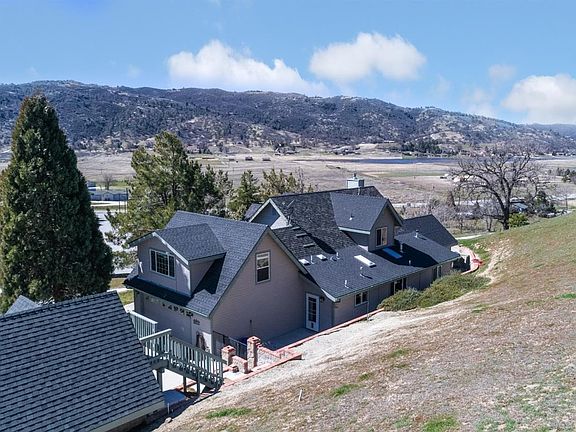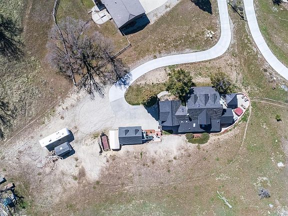 Just Too Good To Be True! Perched perfectly on a knoll at the end of a quiet cul-de-sac sits this Farmhouse-Style Charmer. The home is situated on the lot for optimal expansive meadow and foothill views, with a lovely gazebo-covered patio for those quiet moments of reflection, taking in the vast beauty of the valley, or for friends and family gatherings. There is plenty of room to BBQ, in addition to a pad and electrical hook up for spa ~ At the heart of this lovely home is the Huge Entertainer's Dream Kitchen, with gorgeous rich tones creating warmth and style, with a hint of sophistication. Features include a Lavish use of custom cabinets and lighting, Granite Slab Counters, Enormous Island with seating, Wine Fridge and even a TV to entertain while you cook away! As we know, the kitchen is always where everyone ends up gathering, after all, and this kitchen will accommodate all comfortably and in style! Just off the kitchen is a Butler's Pantry, 1/2 bath, in addition to the laundry room. Pellet stove located to provide optimal heating efficiency for kitchen, dining room and living room. The formal dining room with high-pitched vaulted ceiling is sure to captivate and offers slider access to outdoor gazebo patio area. Comfortable living room with a built in electric Fireplace (w/gas option) creating Cozy Moments effortlessly. Master bedroom is on the lower level, and master bath includes shower, soaking tub and walk in closet. On the second level you will find two bedrooms with a spacious shared full bath on one side of the house, and with separate stair access is the large bonus room, all with an extension of the Architectural Style of this home, adding an interest and charm to the design of the second level rooms. Large attic access off bonus room and bedroom provides storage and added safety factor with additional access/exits from upstairs rooms. The outbuilding has a story-book quality, with a blending of the architectural theme, like a little mini me home! With two levels, and equipped with electric throughout, there are many possible uses for this adorable yet functional cutie! Who says you can't have a He Shed AND and She shed all in one! Upper level a perfect play area for the kids/grandkids, and downstairs level could easily serve as a work shop or office area. The meandering concrete driveway provides easy access from street. Portable-style Carport area and plenty of room for RV parking, and or an area and turn out for your livestock. Ideal valley floor location, close to gate for ease of commute. This one simply will not last! Don't forget to check out the virtual tour!