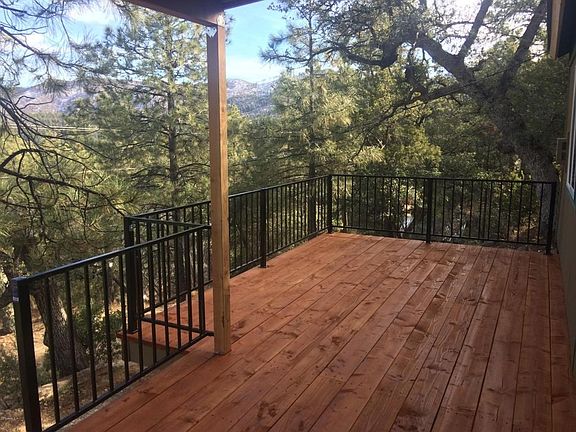 Adorable cabin high on a hill above Crown King. You will never get bored with the views!! Perfect deck to enjoy the cool summer nights in the tall pines. Home is tidy and cute as can be. All furniture remains with sale, including the new LED electric fireplace with forced air. Cozy wood stove will keep this little cabin toasty warm. Dual security doors, full size refrigerator, efficient kitchen & great year round access. Nothing to do but move in!
