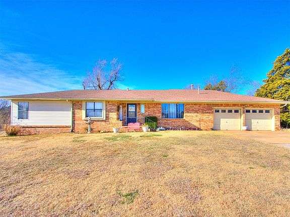 Great chance at acreage in Deer Creek schools. Corner lot great access to HWY and Schools. Older charm with nice nice kitchen and dining. Cozy living room with an area for study or formal dining. Small entrance room between garage and kitchen with half bath and stairs to basement room that has plenty of room for the family to stay safe during storms. House needs pier and structure work attached is Engineers report and Bid for repairs based on report. to be done before closing or will negotiate price if you want to do the work yourself.