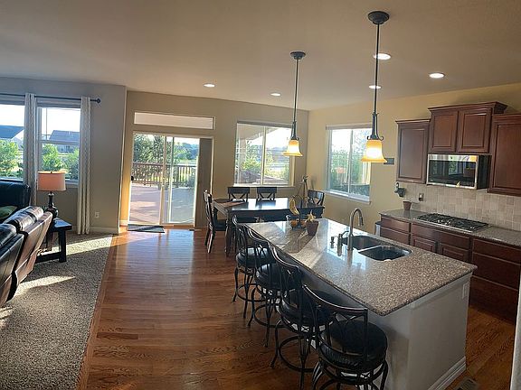 This home is a Lennar Madison floor plan in the Inspiration Colorado community. The home features a beautiful kitchen with granite countertops, gas cooktop, double oven, breakfast area, and butlers pantry adjacent to formal dining. Large master suite with vaulted ceilings, 5 piece bath & walk in closet. Main floor has an office and one bedroom with bath. The professionally designed back yard features a large covered deck & a beautifully designed adjacent fire pit. The finished basement is a great entertainment space for both kids and adults. Extras: water filtration system, whole home humidifier, pool table, air hockey table & maple wood bar with refrigerator! WILL PAY BUYERS AGENT 2.5 PERCENT. Please call 720 789 5704 to schedule a showing. Note: Google street view is not up to date. See attached pictures.