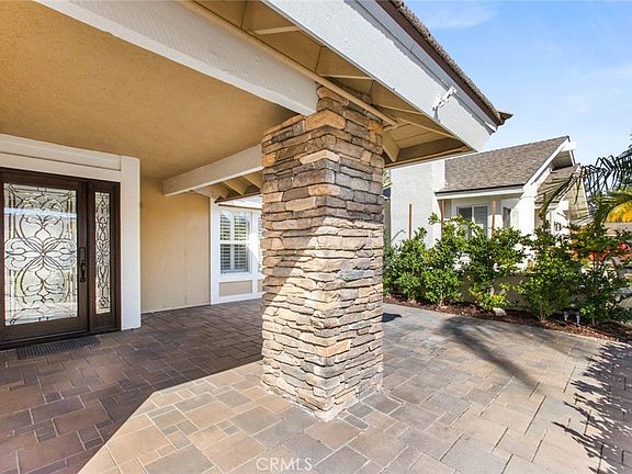 Upgraded Dream pool and spa Home in Shadow Run! Nestled on a quiet cul-de-sac, this beautifully upgraded 4-bedroom (could be 5), 3-bathroom home is an absolute gem. As you approach, you're welcomed by impeccable curb appeal w/a custom brick paver driveway, a charming front courtyard and Stacked stone column accents. Unique entry door with leaded glass inlay and side light make for an elegant first impression. Step inside to be greeted by distressed wide plank wood flooring, dramatic vaulted ceilings, large windows and skylights that flood the space with natural light. Plantation shutters and ceiling fans throughout create an atmosphere of comfort and style.Recessed lighting, high baseboards, raised panel interior doors, dual-pane windows and central air conditioning ensure your year-round comfort. The living room features a cozy stacked stone fireplace with a wood mantle, providing a perfect spot to relax and it seamlessly flows into the gourmet kitchen, making it an ideal space for entertaining and family gatherings. Kitchen is a chef's delight, complete with stainless steel appliances, a gas range, microwave, and dishwasher.Granite countertops with a custom stacked designer tiled backsplash. The center island offers seating and additional storage, and a buffet bar provides ample cabinet space. A spacious bedroom on the main level is currently used as a craft room/office and offers versatility in its use. The upgraded downstairs bathroom features a walk-in shower with glass doors, enhancing convenience and style. Upstairs, the primary bedroom features vaulted ceilings and plantation shutters, and an attached private bathroom has been beautifully upgraded with quartz counters, custom lighting, a walk-in shower with tile surround and glass door. The secondary bedrooms are generously sized, adorned with wide crown molding, and equipped with ceiling fans for your comfort. An upgraded upstairs guest bathroom includes a tub/shower combo. The backyard is an oasis, featuring a custom patio cover with ceiling fans for outdoor enjoyment year-round. A built-in BBQ and counter make outdoor dining and entertaining a breeze. The sparkling pool and spa are perfect for cooling off and relaxing on warm days. Raised brick planters and privacy trees complete the backyard, creating a private and tranquil space. This home is conveniently located near shopping, restaurants, entertainment, and easy freeway access. Low HOA dues for the Lake Forest Community HOA