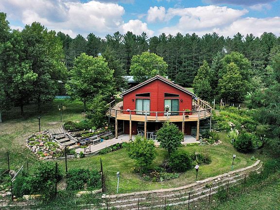 One owner home, one of a kind property boasting 83 acres completely buffered by river front and the 2700 acre Sand Dunes State Forest. The immediate 160 acres of state land to the NW fully abuts the north side of the property. The south and east portion of the land is St. Francis River. Incredible to visit, impossible to fully describe- create your own land legacy with this much loved property. New home was constructed in 2004 and has 3 same floor bedrooms, a wrap around deck to take in all the views and a walk out lower level. The land is improved with multiple buildings that have housed up to 43 horses in the past, but the land is a hunting and outdoorsman's dream. Consider it an opportunity to have privacy, space and access to incredible natural amenities. Garden spaces, work shops, green house, horse arena, hay shed, cattle shed, garden shed, raised gardens, and so much room to roam. See professional pictures for additional descriptions and the drone video.