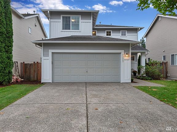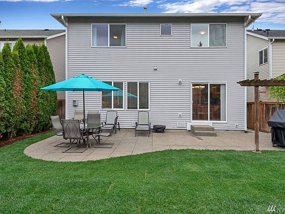 Wonderful 2 Story Home in Patrick's Faire. Dwnstrs is an open concept plan with plenty of Nat light, Liv room w/gas fireplace, hdwd in kitchn/dining/entry & 1/2 BTH. Kitchen has spacious cabs/counters & brkfst bar. Dining area features slider to your private, fenced bckyrd with patio and newly sodded lawn. Upper floor has 3 BR, 2 full BTH with elongated tub in Mstr Suite and WIC. Great location w/easy access to HWY 169 & HWY 18 for commuting, close to shopping & schools and Tahoma School Dist.