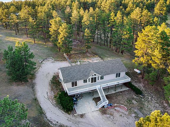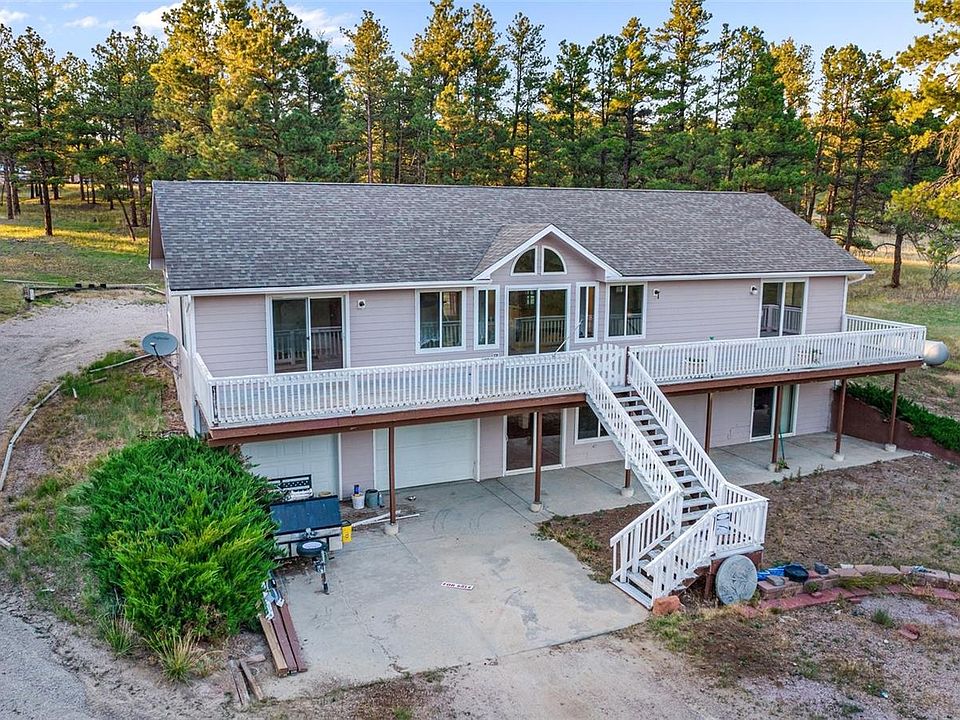 Motivated seller, 50K price reduction!!! Property needs work, but it is a wonderful investment opportunity in beautiful Deer Trail, CO! Secluded two story home on 5 acres surrounded by beautiful trees. Open concept floor plan with vaulted ceilings and tons of natural light. Hardwood floors throughout the kitchen, dining room, living room and master bedroom. Three large bedrooms and two bathrooms located on the main floor with another huge bedroom and bathroom on the lower level. All appliances come with the property including a bonus refrigerator on the lower level and a freezer in the garage. Sliding glass doors from two bedrooms and the the living room go out to the spacious deck offering plenty of outdoor living space.