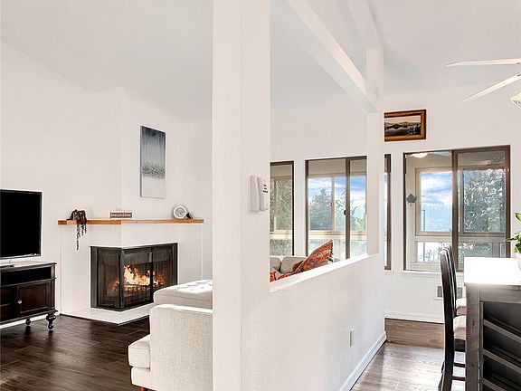 Luxury beyond compare! Best views of the lake and surrounding areas. This immaculate top floor, end unit, level entry condo has soaring vaulted ceilings, open living/dining area & fireplace with new custom mantel. Kitchen has new cabinet hardware, Blomberg fridge & built-in wine cooler. Enjoy stunning views from the front wall of windows, and deck. LVP flooring throughout, all new electrical and separate laundry room. Two lg bedrooms with plenty of storage are serviced by two baths w/pocket doors for division and privacy & a fully renovated shower. Amenities include, outdoor pool, clubhouse, exercise room & guest parking. Close to commuting, shopping & restaurants. Enjoy your own private fireworks over the lake on July 3rd. Welcome Home!