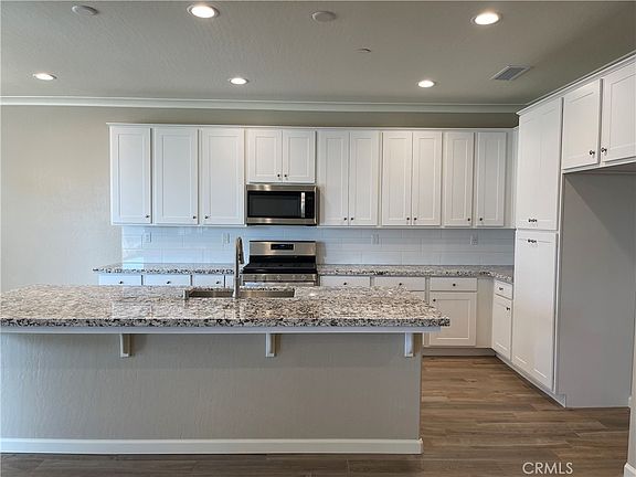 Located minutes away from the charming downtown Draper St in Kingsburg, this lovely single story Madrid floorplan is 2751 sq ft and boasts 4 bedrooms, 2.5 bathrooms, and a huge, 651 sq ft bonus room/den that would be perfect for a game room or home theater! This home is adorned with white cabinetry, upgraded granite countertops, two-toned paint, designer crown moulding, shutters, and lots of wood-look tile flooring everywhere but in the bedrooms and closets. The kitchen features linear tile backsplash and a large island with undermount Kohler vault single basin sink, open to the dining room and great room. The owner’s suite is located on the opposite end from the other bedrooms, with a bathroom that has a spa-like tub with a split tiled shower for convenience. This home has backyard landscaping already installed – perfect for entertaining! Hurry now, Summerlyn Estates is closing out – ask about our neighborhood closeout sale!