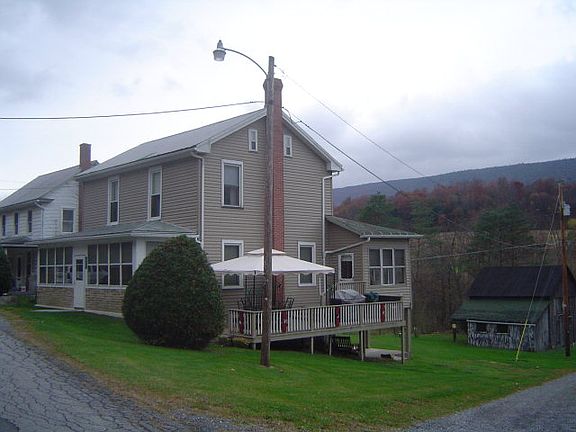 PRICE REDUCED!!!Lovely 1900's farmhouse located on approximately 2 acres just off of Rte 994 in Entriken. This home features 3 bedrooms, 1 3/4 baths, large eat-in kitchen and large living room. Most contents convey. Sun Porch with impeccable view leading to a all- weather outdoor deck. Huge 48x28 cement block garage with 2 large overhead doors, workshop, and entertainment area with woodstove- a great hideaway! Additional outbuilding with large yard. Beautifully maintained and landscaped. All for only $159,900.